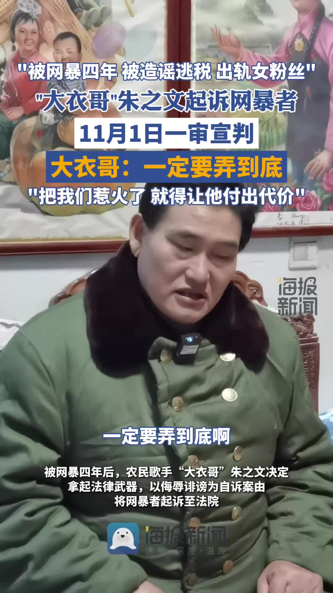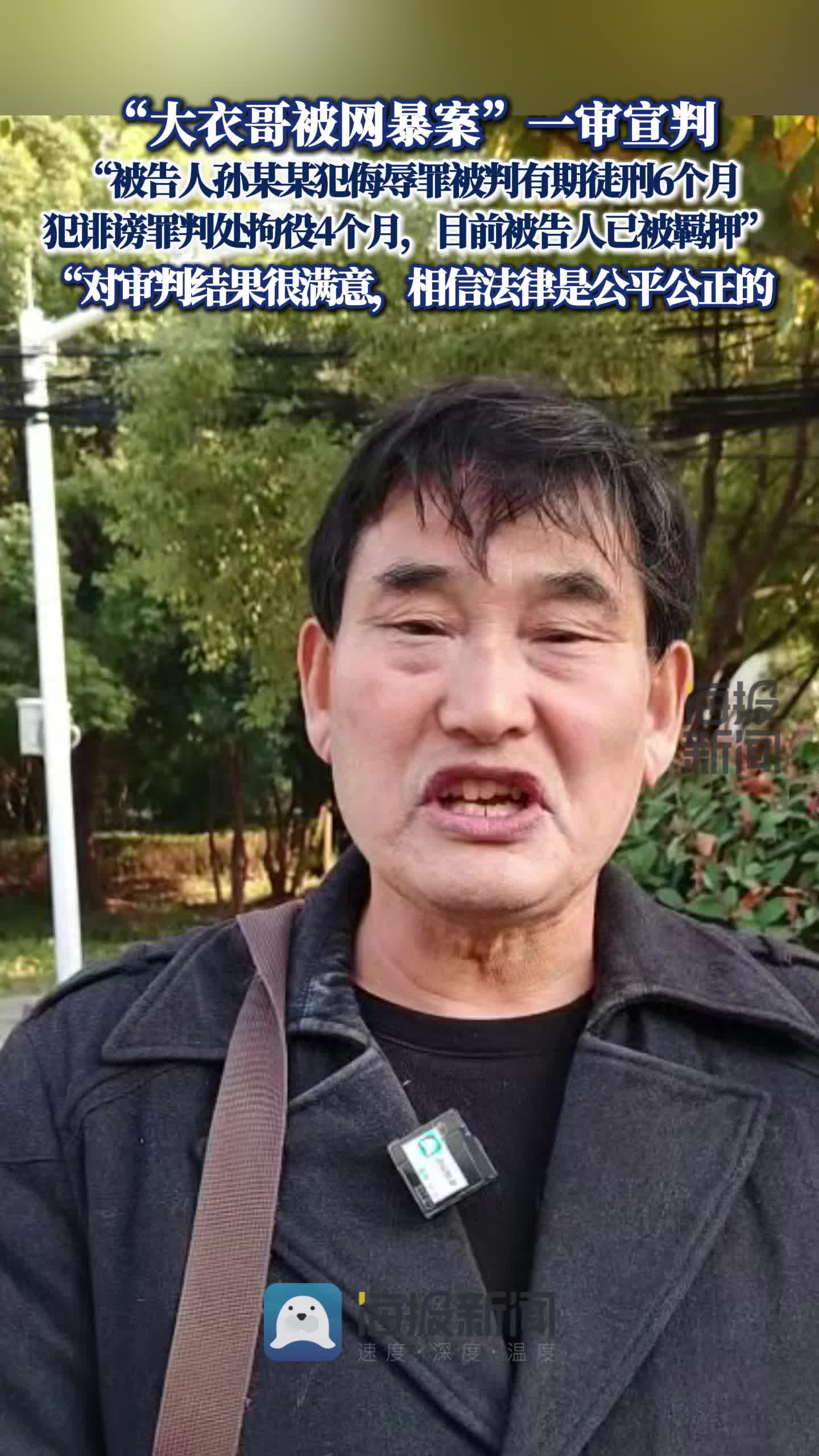 “大衣哥被網暴案”一審宣判:“被告人孫某某犯侮辱罪被判有期徒刑6個月,犯誹謗罪判處拘役4個月”